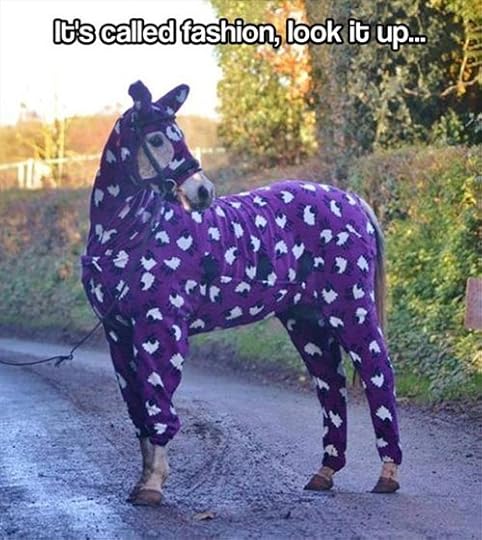 I have to tell you a really cute kindergarten story. Earlier today, I was playing a therapeutic game which has rubber alligator pieces with a little boy. He said something about the alligators being bad and we'd have to kill them and skin them, and then they'd become alligator bags and it'd be funny because they'd be fashion. How does a five year old boy in a title-one school even think about the word fashion? So, when I saw the horse, that's the first thing I thought. "It's funny because it's fashion." Okay, maybe you had to be there, but it really cracked me up.