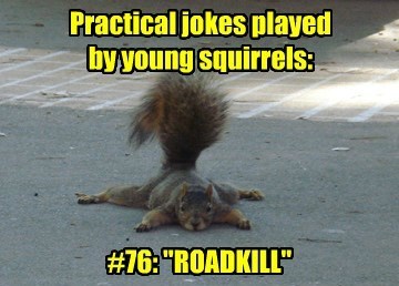I think my favorite is the squirrel games. I laugh when I see flattened squirrels - unless their guts are beside them on the road. Then I feel sad.