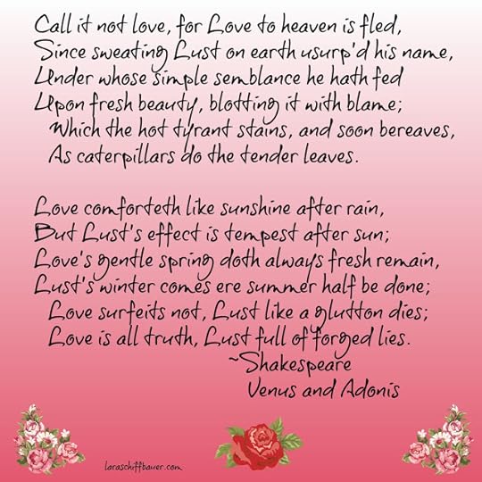 I love this passage of Venus and Adonis, especially the line "Love comforteth like sunshine after rain." Isn't that what it feels like to be in love?