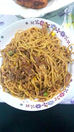 Spaghetti yang telah direbus da n diri akan airnya (saya buat untuk 2 orang makan)