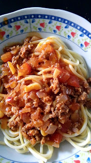 Semalam tak tahu nak masak apa. Saya pulak on diet. Ikram sama sekali tak nak makan nasi, tapi spaghetti dia makan. So dalam malas kena masak jugaklah. Yang paling senang dan cepat serta berkhasiat.