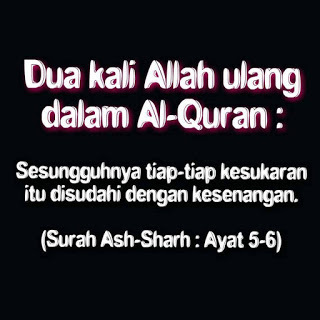 Membaca ayat Al-quran ini memberi ketenangan pada diri. Janji Allah s.w.t, setiap kesusahan akan di sudahi dengan kesenangan.