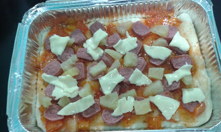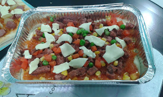 Bila semua dah siap, bolehlah canai doh dan buat pizza.