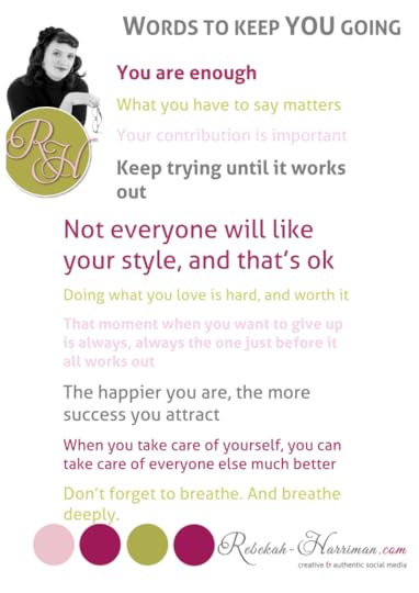 Rebekah Harriman is a social media consultant, coach and trainer who wants to give you the tools, know how and confidence to be yourself and authentically promote your business online. She is passionate about helping people communicate, learn about being themselves and find their voice, about giving them the best tools to use that voice effectively, authentically and in a worthwhile way to make money and maybe make the world a nicer place whilst they are doing it. Find out more about her and how she works, get free tips, downloads and social media news at her blog Rebekah-Harriman.com, creative and authentic social media. Get advice from someone who gets you!