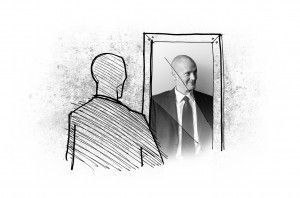 or “cracked clown mirrors reflecting His story in a mirror, darkly”