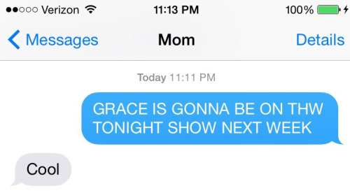 Grace is going to be on The Tonight Show!! WHAT!? THIS IS SO EXCITING I CANT BEING TO EXPLAIN THE FEELS!