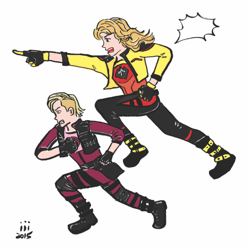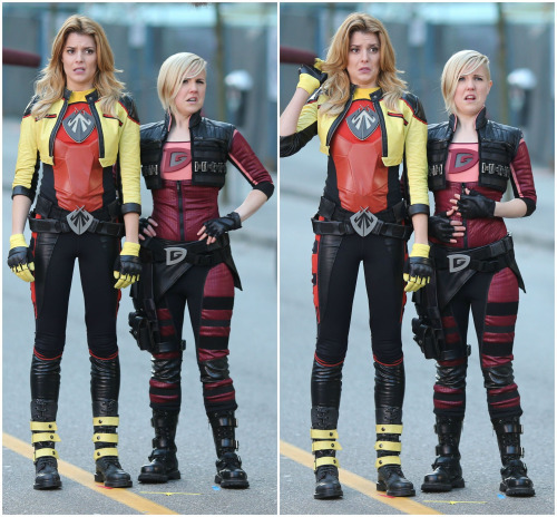 Grace Helbig and Hannah Hart on the set of ElectraWoman and DynaGirl