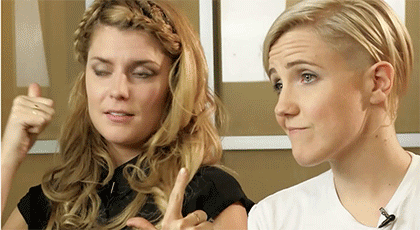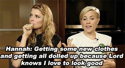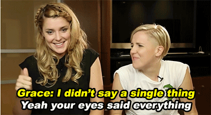 THE WAY GRACE LOOKED AT HANNAH IN THE 2ND GIF IS LIKE “Hannah Hart that’s some bs right there I’m calling you out come on I know you” (x)