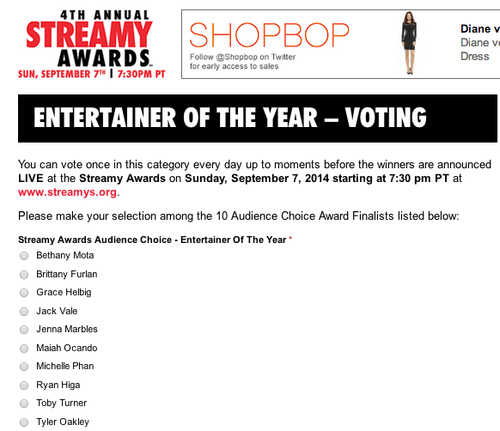 I got nominated for @Streamys Entertainer of the Year among a bunch of wonderfuls! WAH! If you’re so inclined go vote!