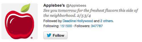 Applebee’s followed me on Twitter. Cue that Best Day of My...