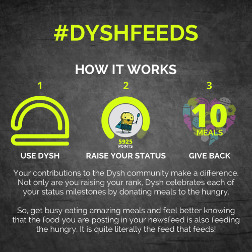 Today @dyshapp launches #DYSHFEEDS, our new giveback program! This is very exciting and very simple and very fulfilling! The more you post your food photos on @dyshapp the more meals we’re able to donate to the hungry! We launched this morning and are already up to 43 meals donated! CLICK HERE TO DOWNLOAD DYSH NOW AND GET YOUR FOOD PHILANTHROPY GOING!