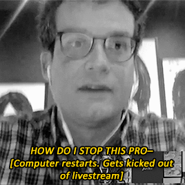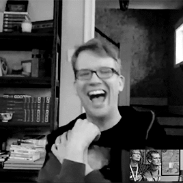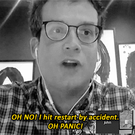 Grace and Hank dying with laughter after John accidently kicks himself out of the livestream mid-sentence