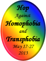 What is the Hop Against Homophobia? It’s a blog hop created by a growing group of authors who write GLBTQIA works and who wish to bring awareness to GLBTQIA literary works and those who identify with non-binary gender. This year it begins on May 17th and will last through May 27th. It starts with IDAHO, May 17th, the International Day Against Homophobia.