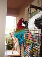 Choosing the winners was a lengthy, complicated, and very scientific process. First, it required that I print all the comments left on my blog. Having done so, I cut each comment into a strip of paper. Then, I pulled my largest bowl from the kitchen cabinet and I carefully placed the strips of paper into the bowl. And tossed them about. And tossed them about some more. Proceeding with caution, I approached Kismet's cage (for those of you who don't know, he's a greenwing macaw) and set the bowl atop the cage. He studied it for some time. *me tapping foot* "Come on, Kiz, I don't have all day." Kismet decided the strips of paper would be nice to bite and tear up. The first three strips that fell from his lips... er... beak won a signed copy of Safe!And now... drum roll, please... The winners for participating in HAHaT especially beak-picked by Kismet are... KarlShirley AnnJPadawan11Congratulations!