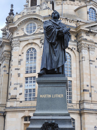 A bronze statue ofreformer and theologian Martin Luther survived the bombings and now stands infront of the church.