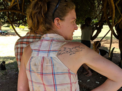 Thisweek, I was working on cleaning up my computer by deleting some of thethousands of pictures I’ve stored from all my travels. In 2017, Val and I wenton one of our many trips to Kenya, and one day she got sunburned while wearinga shirt with straps in a pattern across her back. And there were those words,blowing along her back with flower petals.