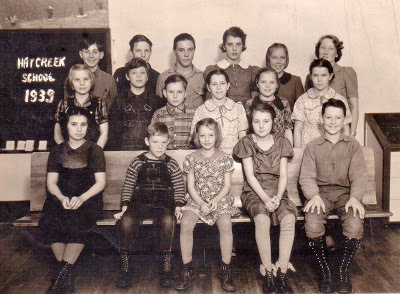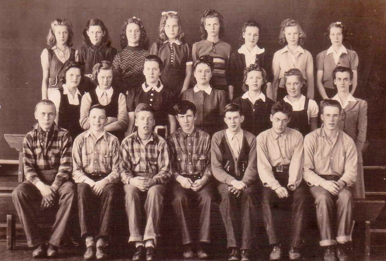 1939, Hay Creek School. My mom is in the second row on the far left. Hay Creek was a tiny one-room school house, with a second life as the town hall for the Wilson township. Somewhere I have a picture of it in later years, before it was torn down for a new town hall, but couldn’t find them this morning. Also of note, when your grandparents say they walked to school, uphill, both ways, it was possibly true. My mom lived on one hill and the Hay Creek School was about a mile away up another hill.