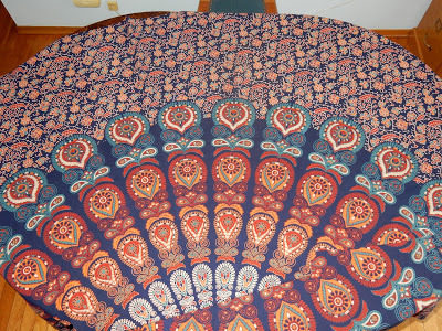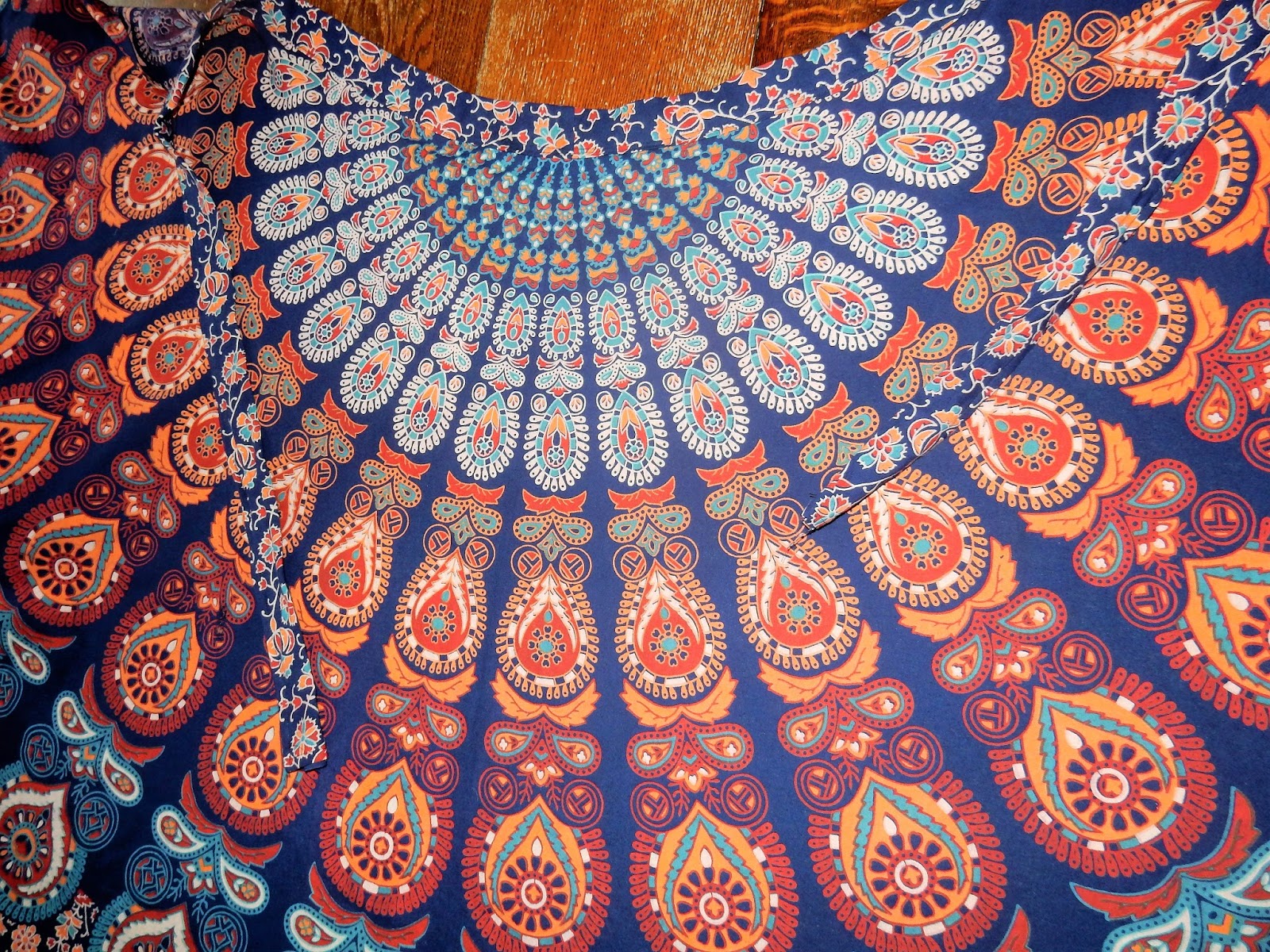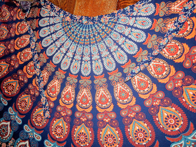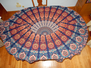 A month ago, when my friends and I went to the Fox River Mall for a girls’ weekend, I went into Earthbound Trading on my quest to find the perfect purse. I had success, but by then I had been sucked into the back of the store and the sale rack. They had a stack of six foot square tapestries, originally priced at $39.99, but marked down to the $19.99. As the sales clerk came through, seeing me pawing through the pile and opening them all up, she said they were an additional 30% off.I was like, “in addition to the already marked sales price? So, like for $14 each?”