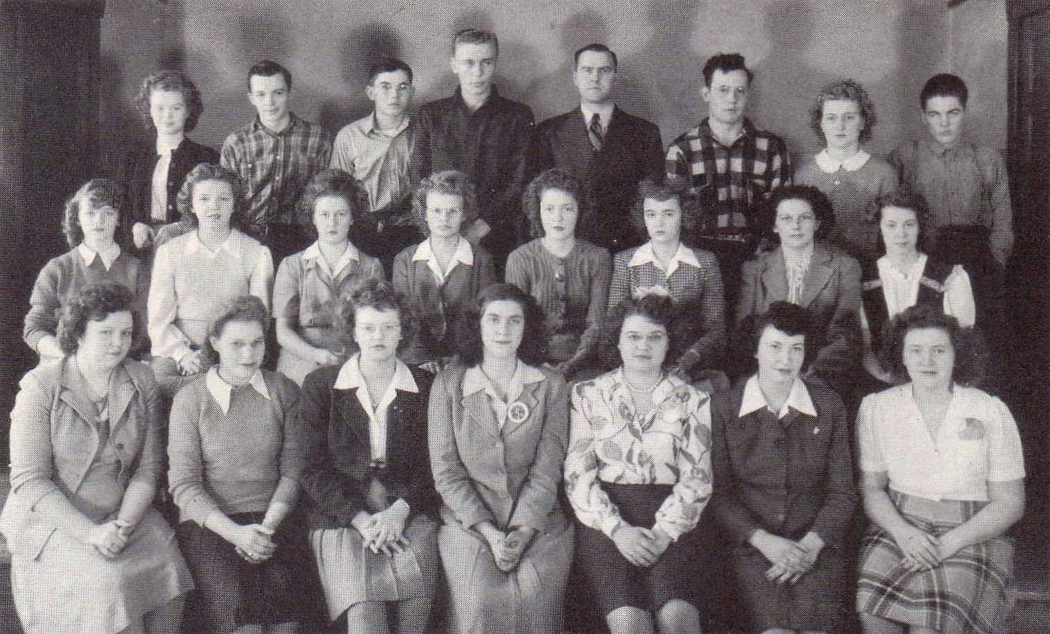 1945, Tripoli High School, Mom’s Senior year. She’s in the front row, second from the left. Her yearbook saying was, “She loves life, she lives life.” Never heard her say that, I think that just picked sayings for everyone.