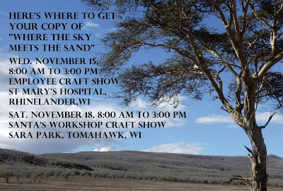 You’ve just read another one of the discarded scenes from “Where the Sky Meets the Sand”. Every time I read through all those deleted files, I’m amazed that I wrote that much and then was willing to let it go. I had written 31 chapters before I decided that nearly half of it had to be cut from the novel. Interesting that several of the scenes revolve around a book, the book the missionary John gave to the lost boy, the book which told the life of Jesus in the boy’s language. If you haven’t read “Where the Sky Meets the Sand” yet, it’s available on line at Amazon.com and Barnes and Noble. If you live in north-central Wisconsin, you can purchase the book at one of the sales I’ll be at in the coming week. Also, I value your feedback, so don’t forget to post a review of the book as well as letting me know what you thought. Much thanks in advance.