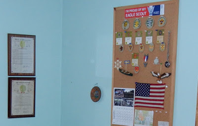 When he earned his Eagle Scout, though, I did give him his own wall. That’s about the only thing that hasn’t changed in this room in all that time.