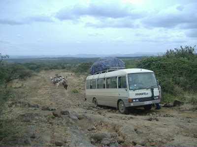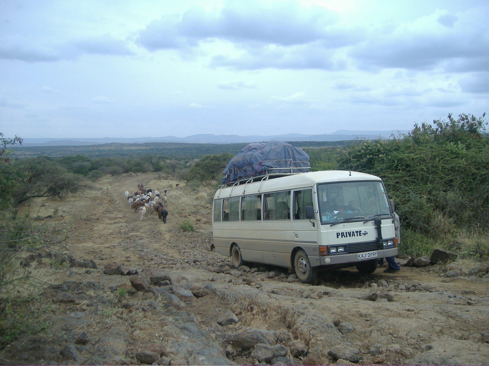 This picture is from my first trip to Kenya in 2006. The bus we rode in was much larger than the Jeep the boy is riding on in the scene above, but it gives you an idea of the dust the boy was combating.
