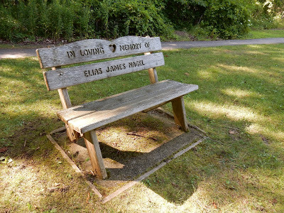 What would have been a three hour drive was much longer due to lots of potty breaks, but that’s okay. We finally stopped for lunch around 1:30 at Bay Shore County Park in Benderville. Dino wanted to play, but no dogs were allowed in the playground area. He really needed a nap by then anyway, so finally laid down by our picnic table while we ate our picnic lunch.