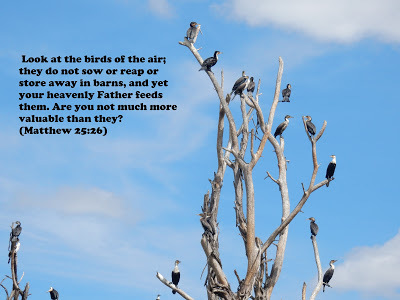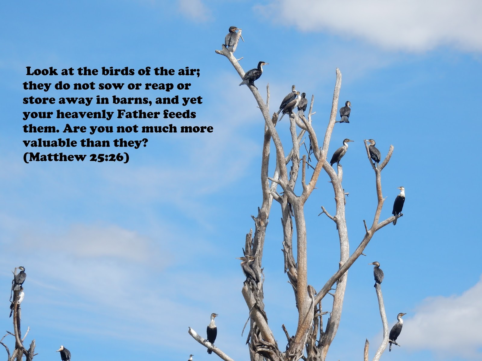 “Therefore I tell you, do not worry about your life, what you will eat or drink; or about your body, what you will wear. Is not life more than food, and the body more than clothes? Look at the birds of the air; they do not sow or reap or store away in barns, and yet your heavenly Father feeds them. Are you not much more valuable than they? Can any one of you by worrying add a single hour to your life?” Matthew 6:25-27 (New International Version)