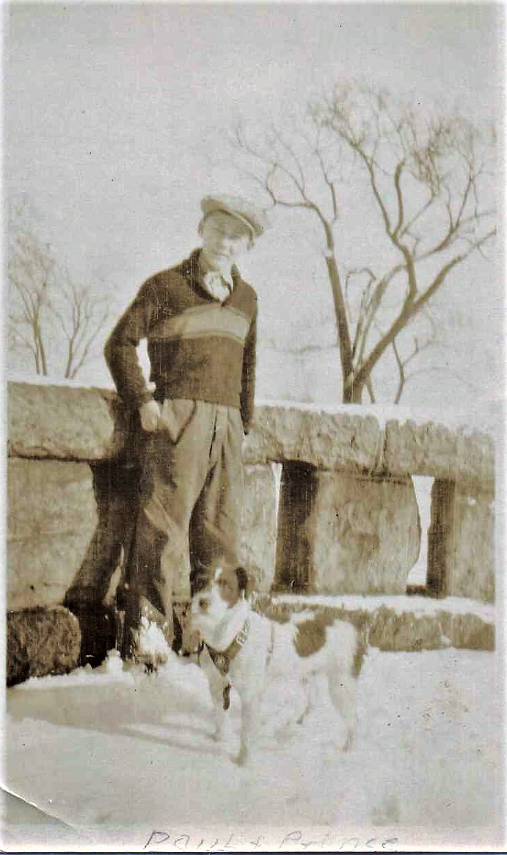 These next two photos rather confuse me. The first one is supposedly of my dad, is dated January 11, 1923, and says the dog’s name is Prince. Dad would have been eight years old at the time and still living in Germany.