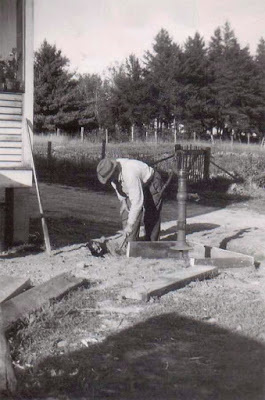 This is grandpa working on the well in front of their house. I don’t know what he’s doing, but whatever it was, he had to do it by hand and by himself. No specialist to call in. Seems he was also always wearing a hat.