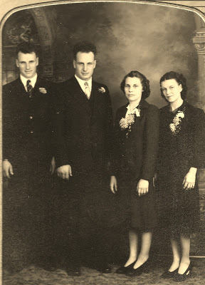 My Aunt Helen marrying Uncle Bob in 1942. His brother was their best man and her cousin was their maid of honor. The best man and maid of honor had gotten married in 1939. So brothers married cousins. Right?
