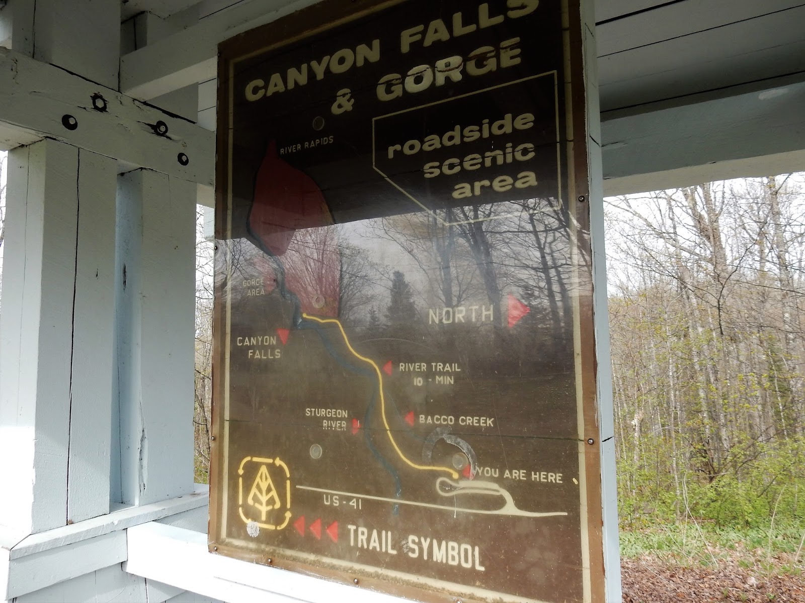A few miles up the road is a roadside park with a well-marked trail to Canyon Falls on the Sturgeon River.