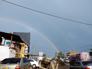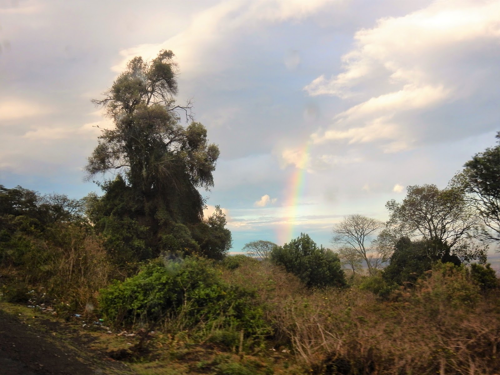 While in Kenya in April, we witnessed not one, but two rainbows. The first one was as we were going into the Rift Valley one morning after a rain shower