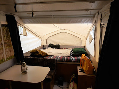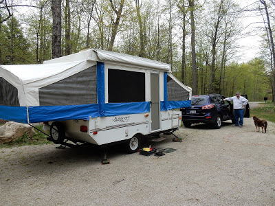 Hard to believe that it was almost a month ago that Hubby and I took our first camping trip of the season. Also hard to believe that it got down to 33 degrees outside both nights (probably hovered in the 40s in the camper!). The rains have continued since then. Hubby wanted to go in the early spring to see waterfalls when the water was high. Ha! At the rate the weather is going, his wish would still be granted.