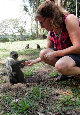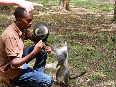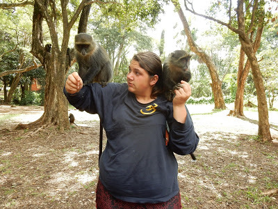 After visiting a crocodile farm, a giraffe center and a baby elephant sanctuary, on a Sunday back in April in Kenya, when our driver Samson said we were going to last go to the monkey park, I thought it would be another organized zoo-type place. We pulled up to the City Park and still I thought there was going to be various monkeys all behind bars somewhere in that park.