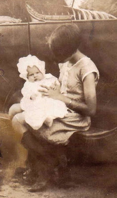 This is the earliest picture of my mom, as a baby, in 1927, being held by (she thought) one of her cousins.