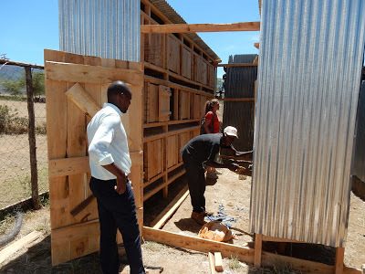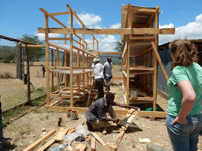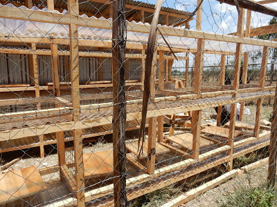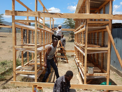 Finally, Monday afternoon we rode out to Southern Cross Academy to see the work on the rabbit project. The week before, Tumaini Volunteers had wired the money to Marafiki, so that they could buy the building materials to start the hutches.