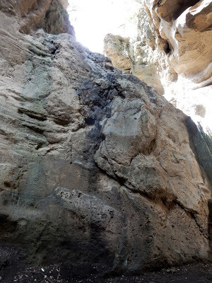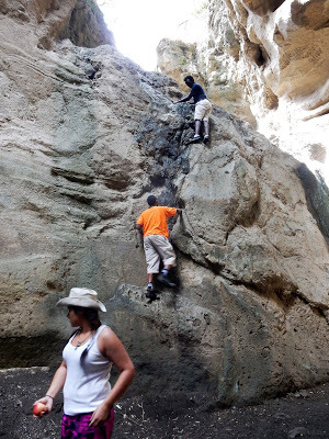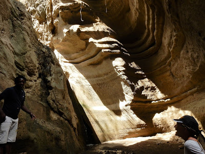 This is the point where Boni said, “we can go to the left up this canyon and see a lot and climb a lot and it will take a half an hour, or we can go the other way and be out in five minutes. Your choice.” As if I had a choice.