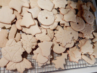 You’re supposed to bake them in a 400 degree oven for 5 to 7 minutes. Really? Coz I can get the next pan ready in that amount of time? Nope. I turn the oven down to 375 or even 350 if I am being a putz. Then they bake a lot slower and you can get the next batch rolled out, cut out and panned.