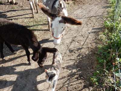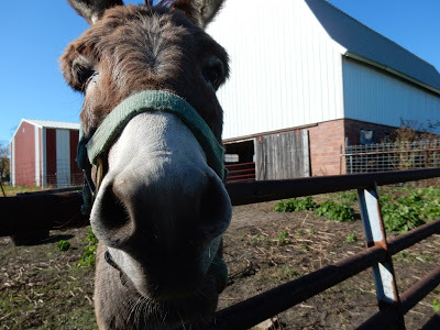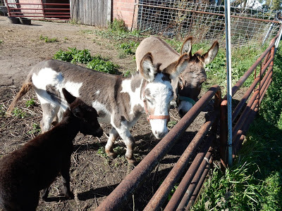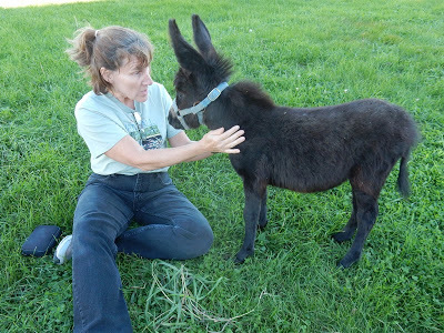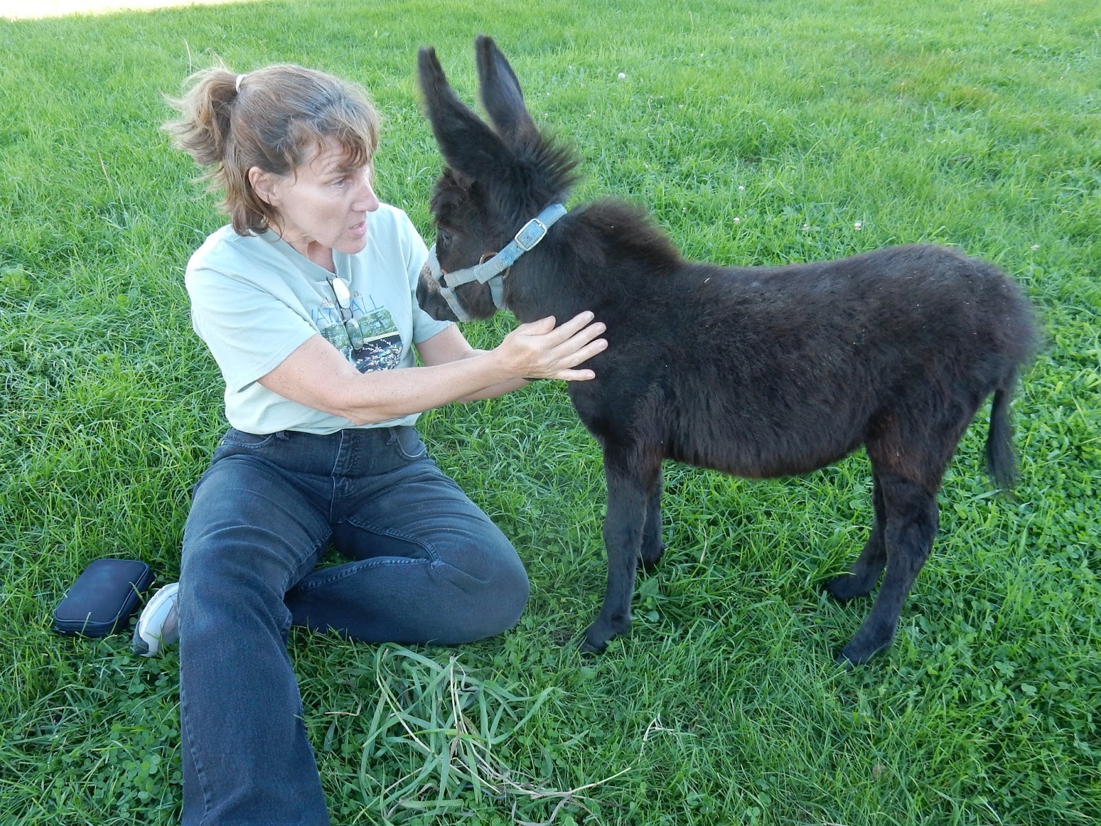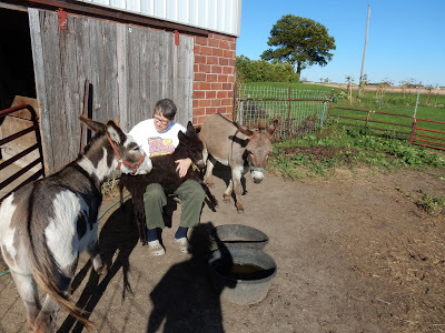 Her husband breeds draft horses and for a while she raised miniature horses. Recently she has discovered the joy of mini-donkeys. Can you see why I love going to her house?