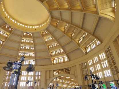 Built in 1937, in the art deco style, by aFrench architect, it is a bright yellow building with an 85-foot-high centraldome, with four tall arch-roofed arms branching out diagonally across theblock. In between each of those halls, is an opening for more vendor’s stalls leadingout to the street. (I plucked this photo from Google, full credit to whoevertook it. I hate borrowing pictures from the internet, but I left my drone athome.)