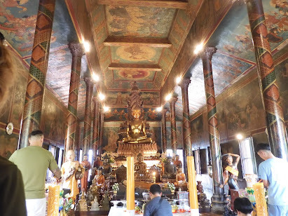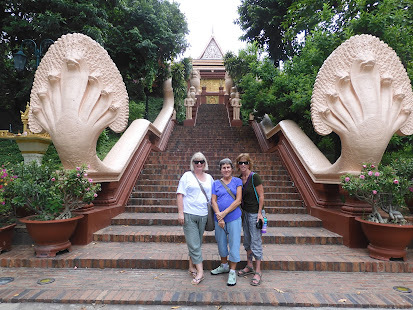 Next stop was Wat Phnom temple, a Buddhisttemple (which are called wats). It is the tallest religious structure in thecity, with a total height of 150 ft.