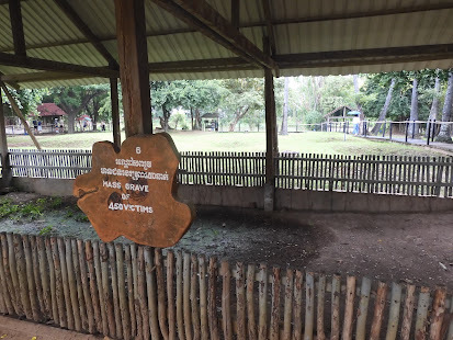 So,that Tuesday when I was in Cambodia last month, our first stop of the day wasthe Killing Fields, where 8,895 bodieswere discovered after the fall of the Khmer Rouge. It is believed that manymore were buried there as fragments of human bone continue to surface. It isonly one of 300 such mass grave locations throughout Cambodia.