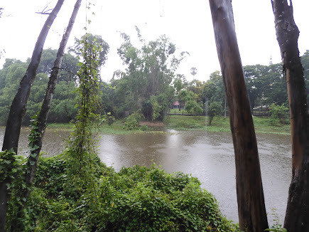 AsI left the main grounds to walk around the pond on the east side of thegrounds, I listened through my headset to stories of survivors and witnesses of these atrocities. The rain fell steadily on the borrowed umbrella I held overmy head. It all felt so very surreal.