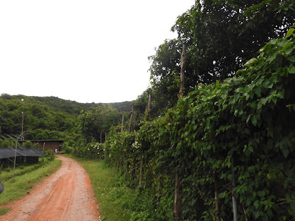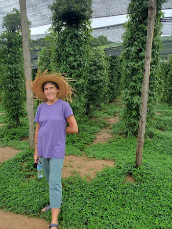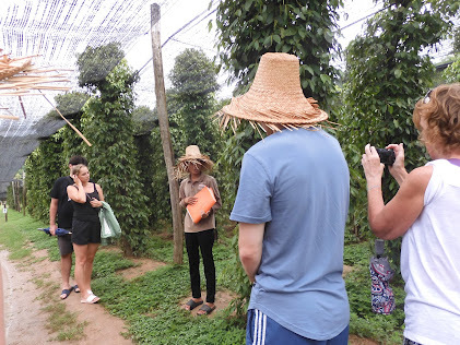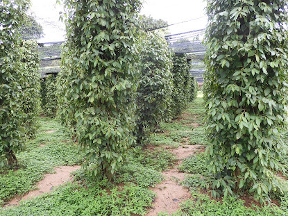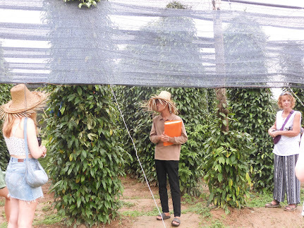 Butafter hearing all about the Kampot pepper, we walked to the next pepper field –black pepper, I think it was.