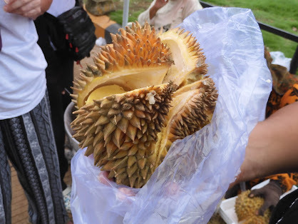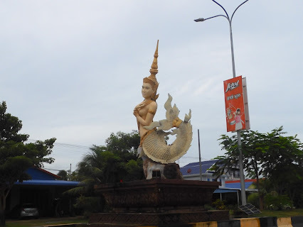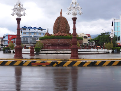 Amongother things, the town is known for its durian fruit. But I kept referring tothe statue of one in the roundabout near our hotel as a pineapple.