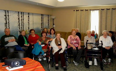 Long story short (too late for that, Chris), I gave my presentation for about ten residents this past Friday. I still didn’t take any pictures inside, but asked one of the staff to shoot this one of me and my guests.