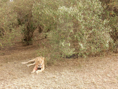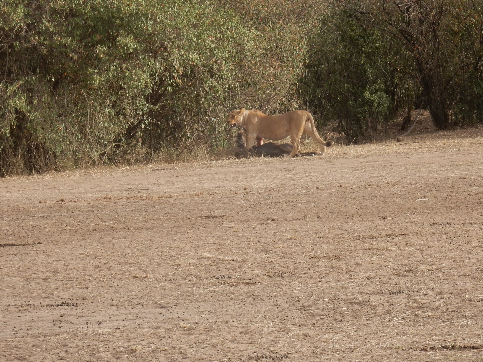 Tony, our driver, watched the lioness and confidently nodded, “she was just killing for fun.” Under another tree was a wildebeest she had no doubt killed earlier. With the easy pickings in the herd, she couldn’t resist taking down an easy kill.