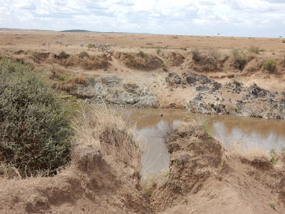 We were just finished eating, when suddenly one of the guides cried out, “there’s going to be a crossing.” Okay… So we threw all of our stuff in the vans within a second and off we bounced towards the river, in anticipation of seeing a herd of wildebeest dramatically cross the river as we have seen on so many National Geographic specials.