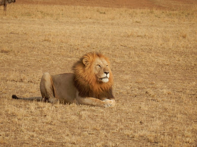 But no, the second lion must have already had his fill on the wildebeest smorgasbord. He laid down on his haunches a few hundred feet away, the late afternoon sun shining on his stunning face. And I swear, he shook out his mane, as if he were Fabio.